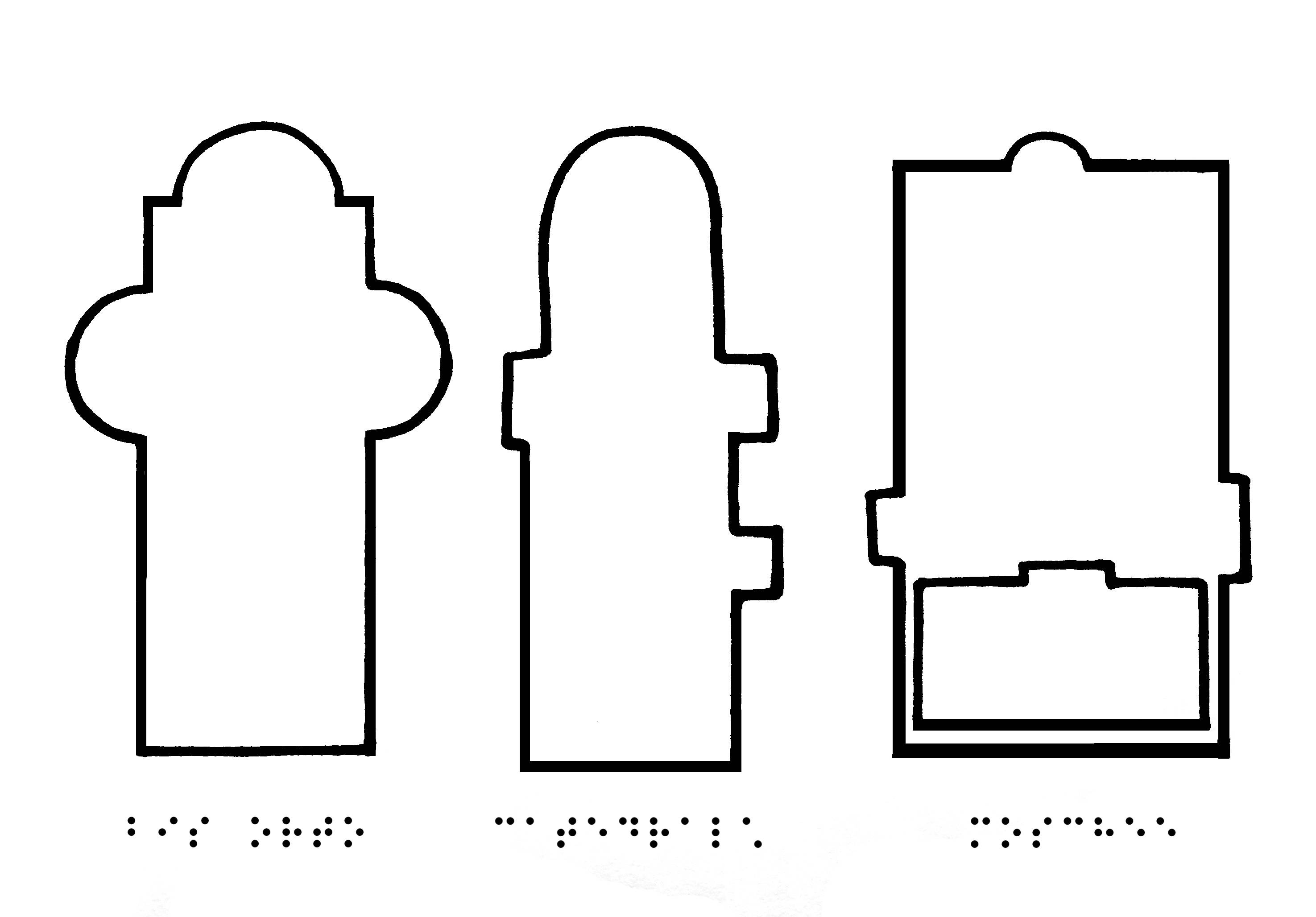 Descrierea ilustrației: sunt prezentate (de la stânga la dreapta) planurile a trei așezăminte de cult – biserica ortodoxă (basilica), catedrala și moscheea.