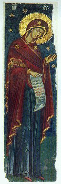 Descrierea ilustrației: este prezentată Maica Domnului în Deisis. O descriere detaliată se găsește mai jos în articol.